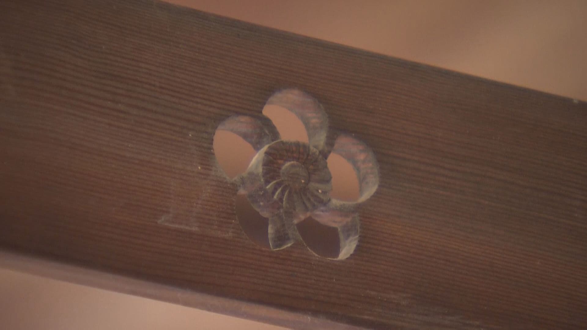 レムコーさん「そうですね、欄間は昔から。これは梅の花と竹。そとの手すりが松の模様。松竹梅って日本のお祝いのときに使っていた(シンボル)」