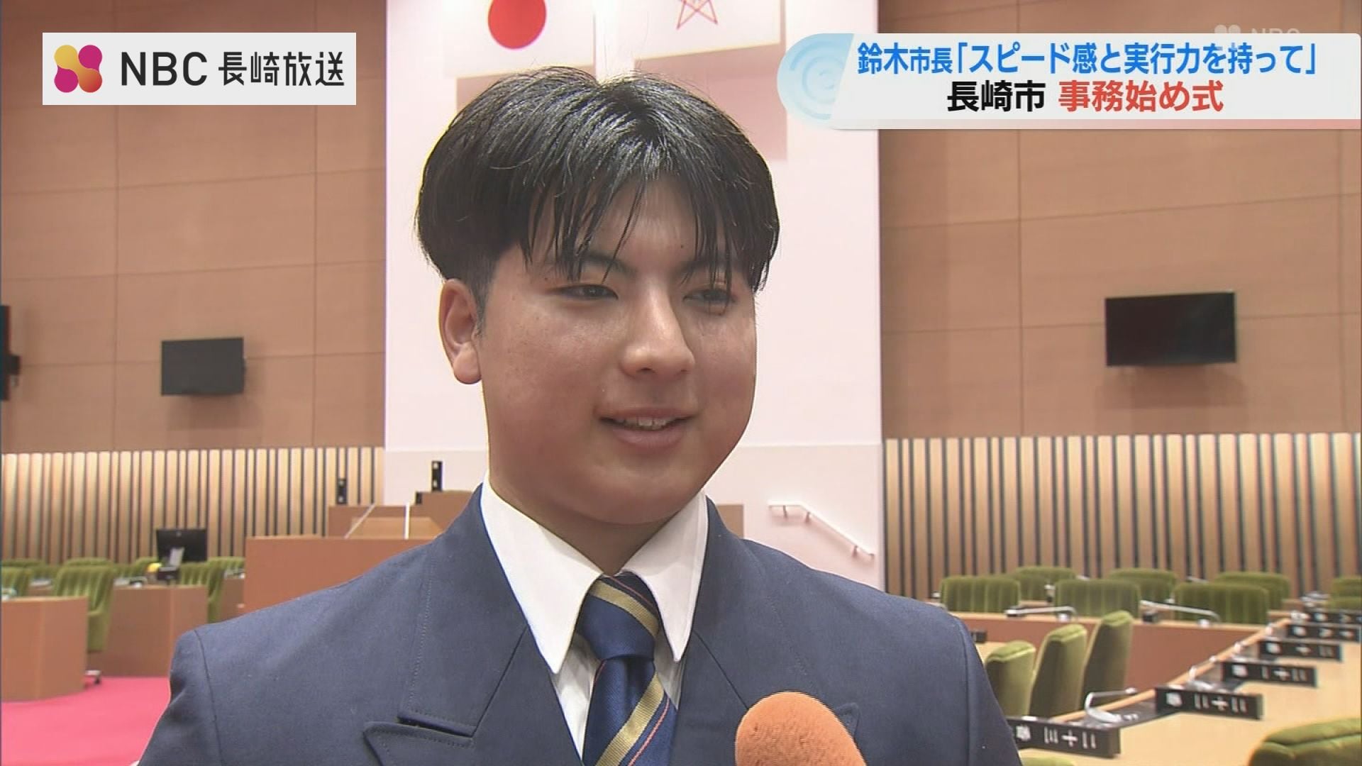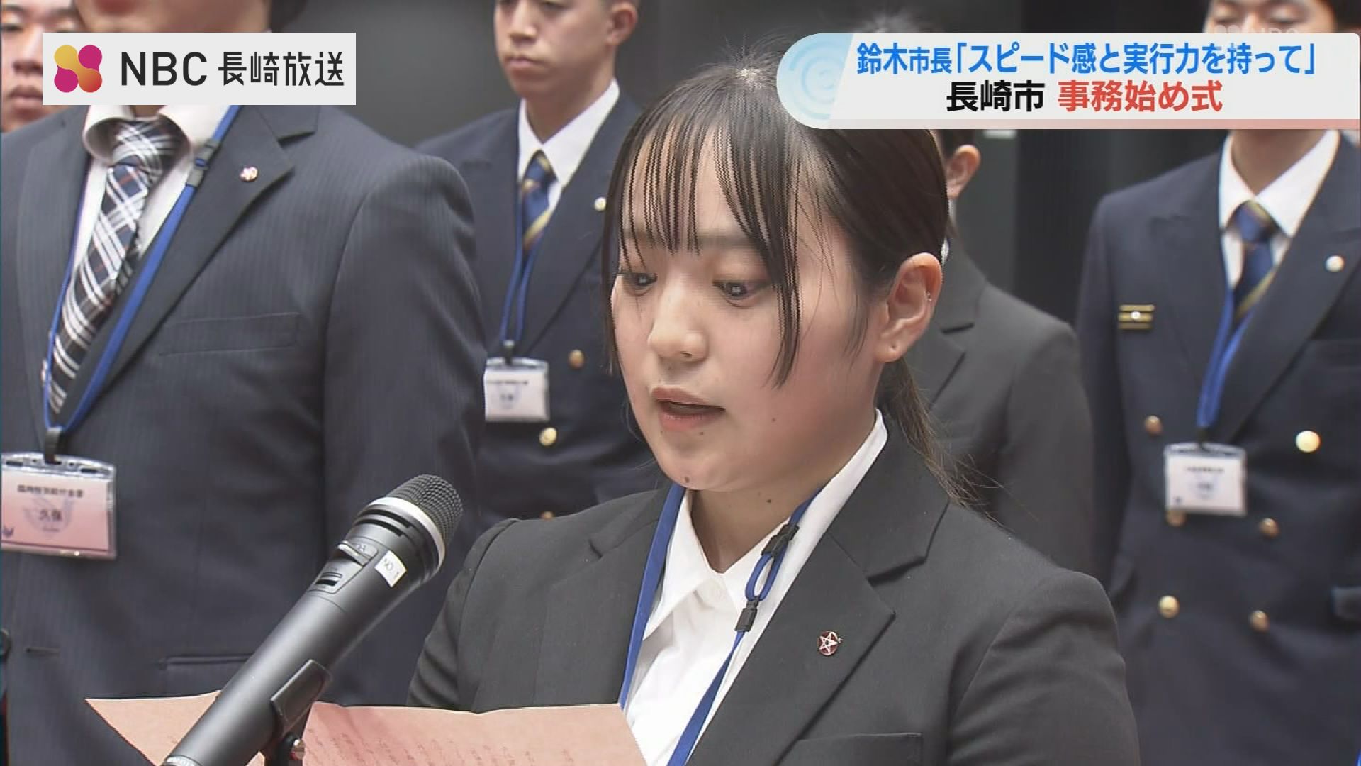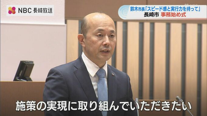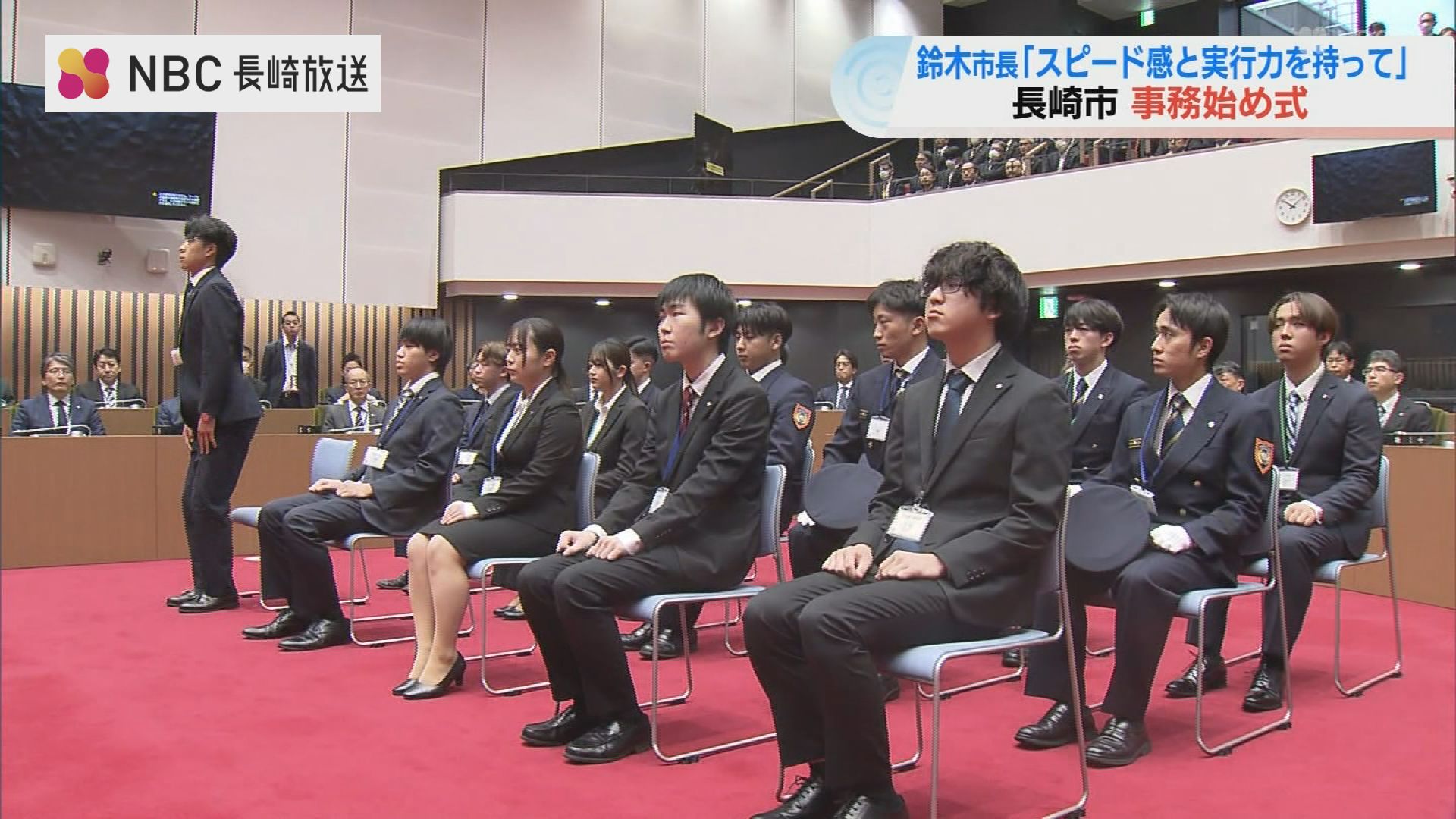 官公庁や企業の多くは5日が仕事始めです。長崎市役所では、事務始め式が行なわれ、鈴木市長はスピード感と実行力を持って施策の実現に取り組むよう述べました。