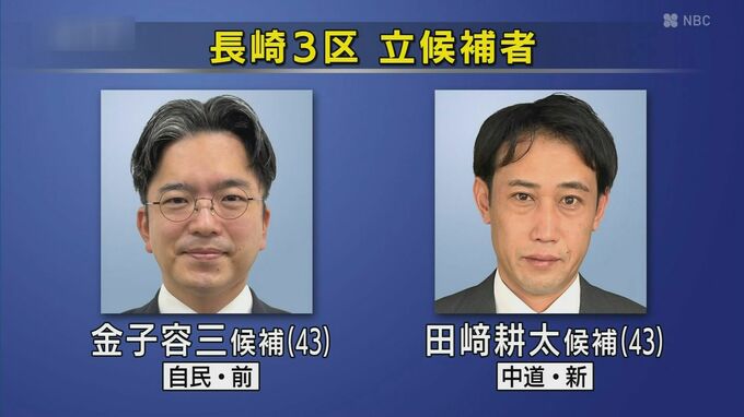 長崎3区に立候補しているのは自由民主党・前職の金子容三候補、中道改革連合・新人の田崎耕太候補の2人です。