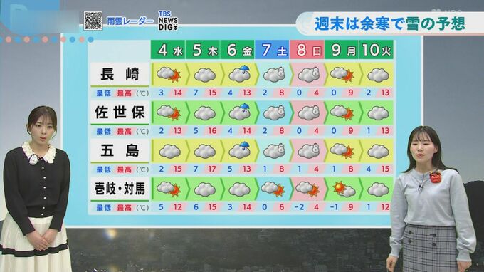 長崎の天気、NBC放送の夕方ニュース、平地真菜気象予報士の解説です。