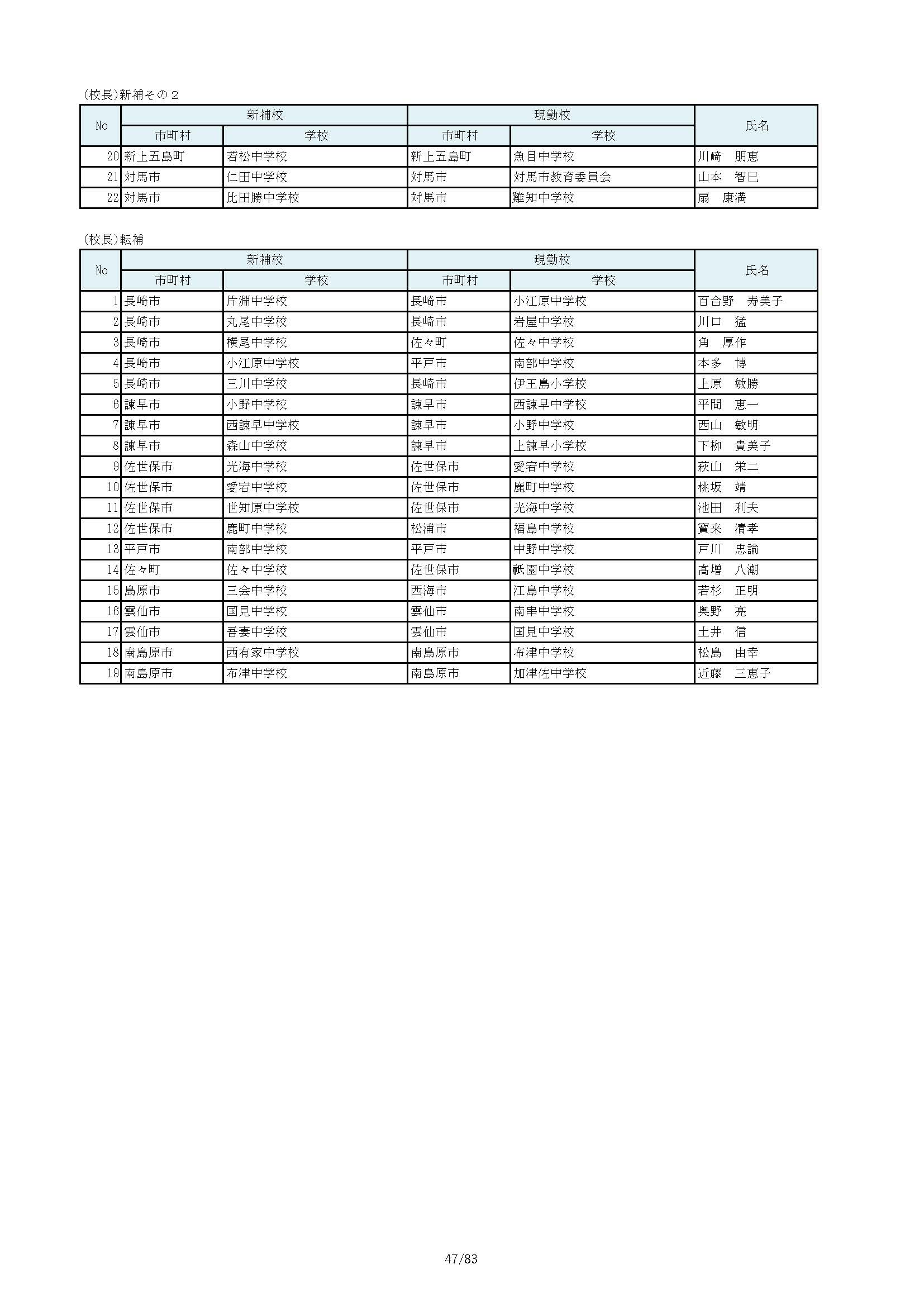 長崎県教職員人事2026 あの先生はどこへ?中学校・義務教育学校(異動・退職・新採用) 全掲載