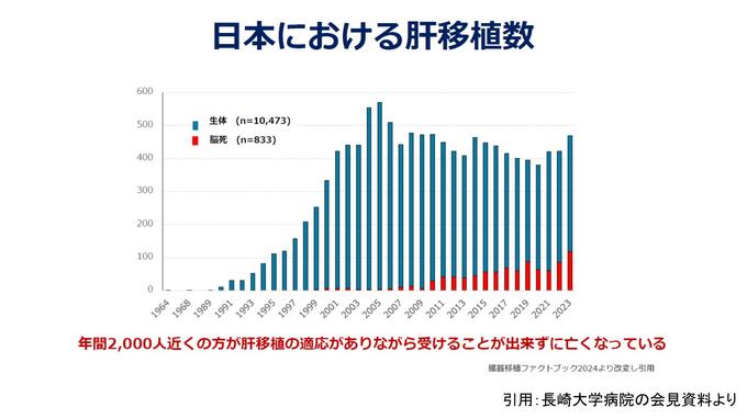 会見で江口 晋教授は、日本人ドナーの深刻な不足を強調した。現在、国内の肝移植は年間約500件にとどまる一方、移植適応となる患者は約2,000人存在し、毎年約1,500人が治療機会を得られないまま命を落としているという。「ドナー不足や年齢制限で移植を受けられない方々に、自分の細胞を用いた拒絶反応の少ない別の選択肢を提案したい」と、移植外科医としての切実な動機を語った。