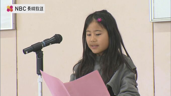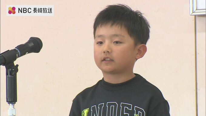 児童代表の3年生「3年生になったら、算数でわり算があります。かけ算よりも難しいと思うので毎日練習したい」