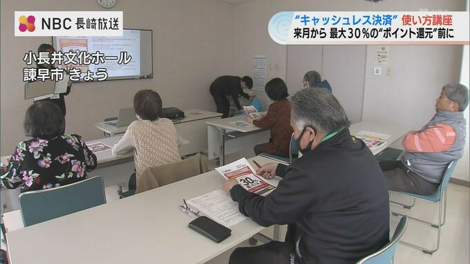 普段、キャッシュレス決済を利用していない人にも活用してもらおうと、諫早市では、13日から市内の公民館などでキャッシュレス決済の使い方講座を始めました。