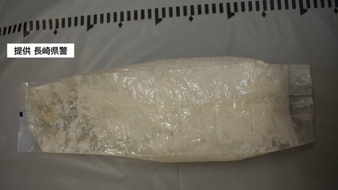 長崎県警によりますと去年10月、対馬市豊玉町で近くに住む住民が海岸で茶袋を発見。重さや手触りに違和感を覚え開封したところ、中に白色の結晶物が入っていたため警察に届け出ました。