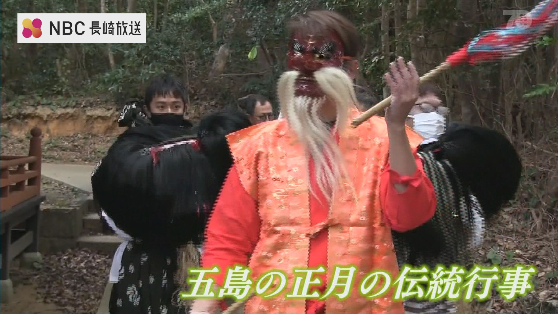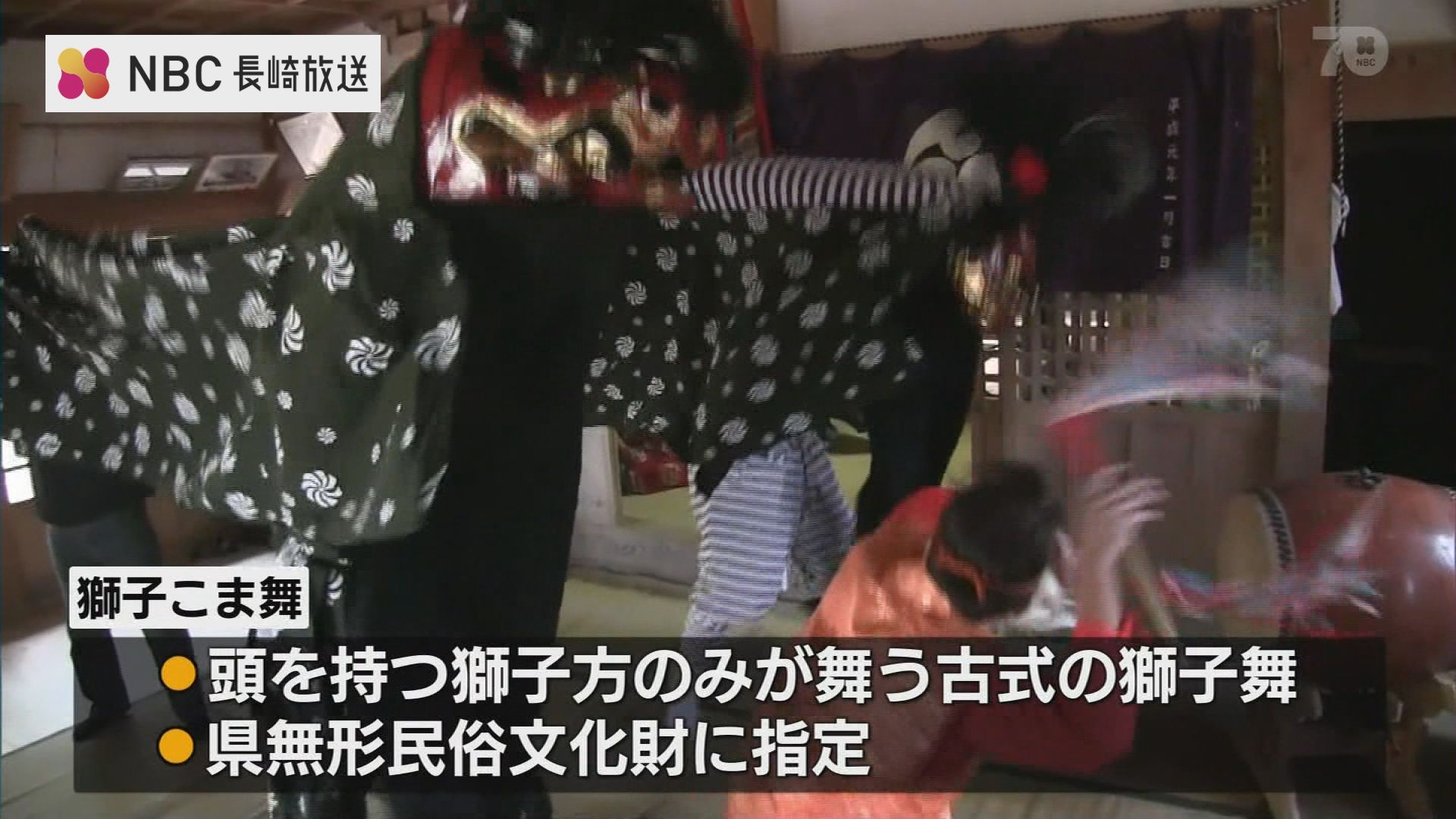 長崎県五島市三井楽町で3日、正月の伝統行事「獅子こま舞」が行われ、1年間の無病息災を祈りました。