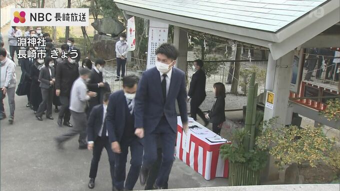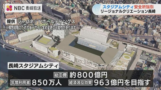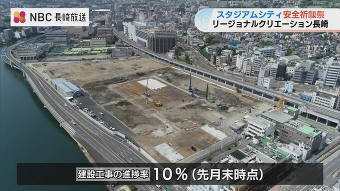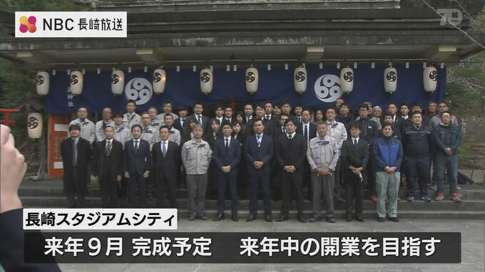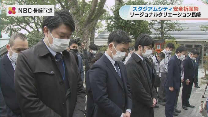 ジャパネットホールディングスが長崎市幸町に建設している長崎スタジアムシティの関係者が6日、長崎市内の神社で工事の安全を祈願しました。