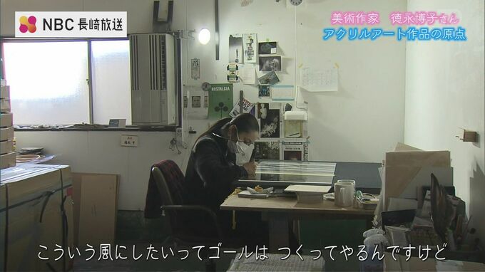 美術作家・徳永 博子さんは、アクリル板を削り、作品を制作しています。