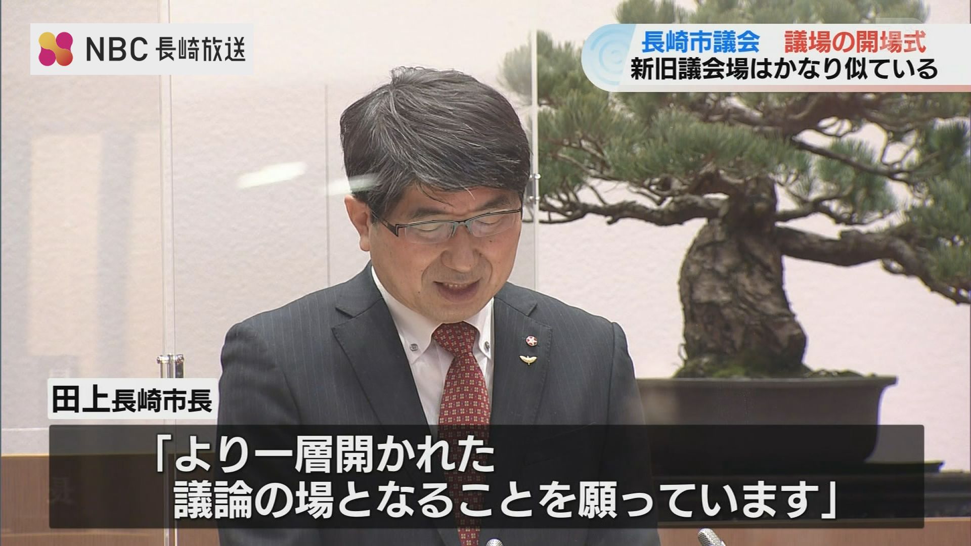 長崎市議会 武次良治 副議長:「ここに長崎市議会議場の開場を宣言いたします」