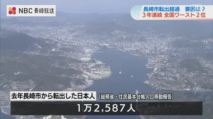 長崎市の調査によりますと、転出理由のおよそ3割が『転勤・転職』となっていて、市では「営業所や支店の統合など“企業の経営形態の変化”が要因のひとつ」とみています。