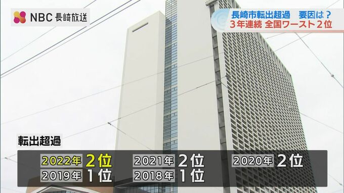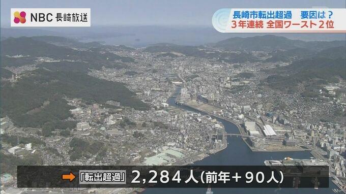 長崎市から別の市町村へ転出し“減った人の数”が、3年連続で全国で2番目に多かったことがわかりました。