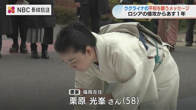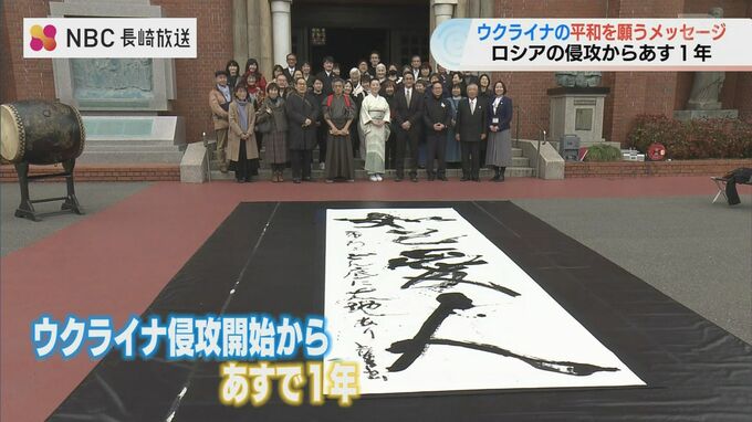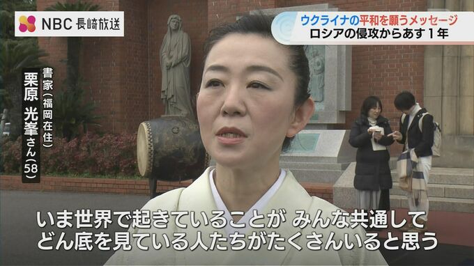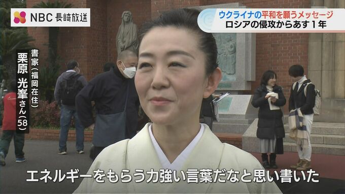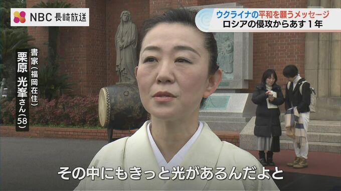 長崎市の浦上天主堂では23日、戦争の終結を願う書のイベントが行われました。