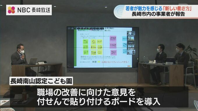 企業の人手不足が課題となるなか、若者が魅力を感じる職場をつくるための企業の取り組み事例を共有する報告会が13日、長崎市で開かれました。