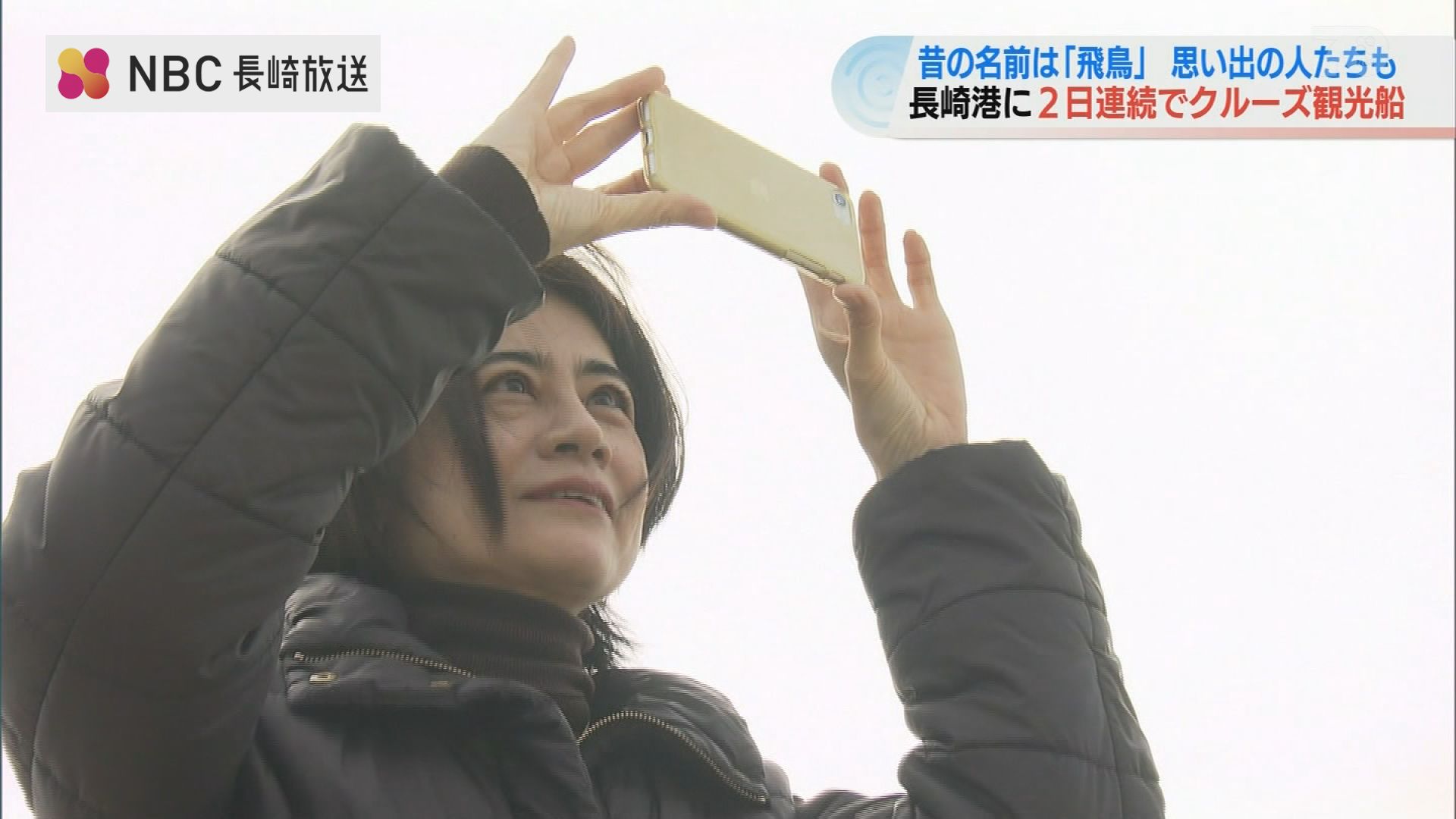 入港を撮影しようと、長崎市の水辺の森公園近くの岸壁にはカメラを構える人たちの姿がありました。