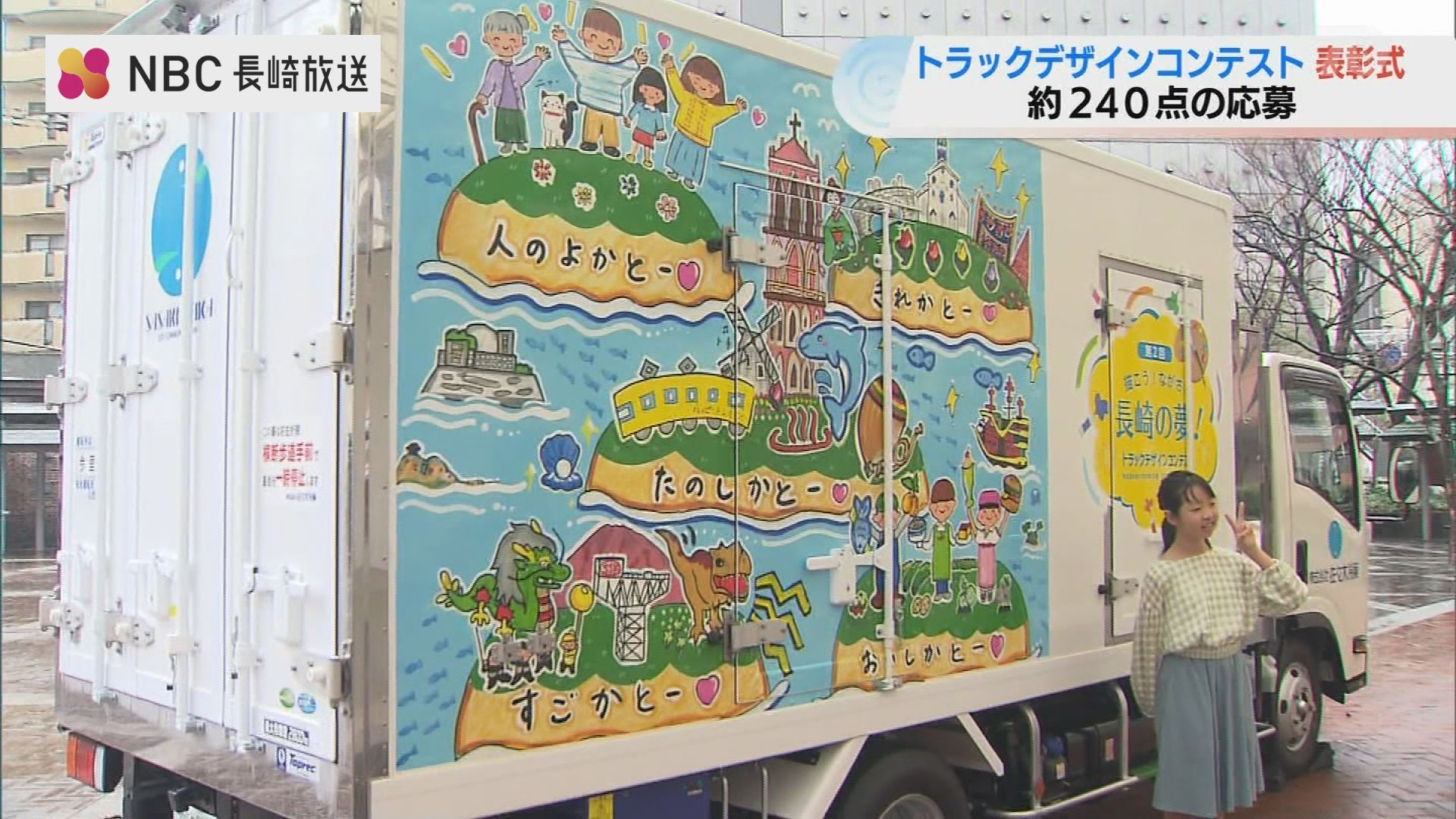 子ども達のイラストをトラックの荷台に描くコンテストの表彰式が21日、佐世保市で行われました。