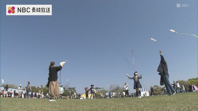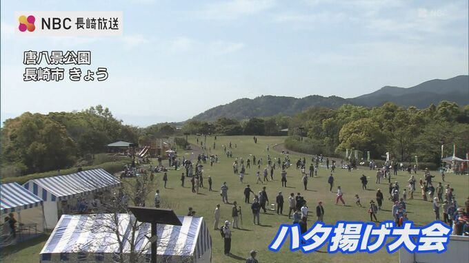 長崎の春の伝統行事「ハタ揚げ大会」が2日、長崎市で4年ぶりに行われました。
