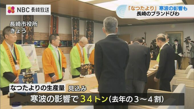 びわは、長崎市が生産量日本一を誇りますが、今年のなつたよりの生産量は、寒波の影響で34トンと去年の3~4割になる見込みです。