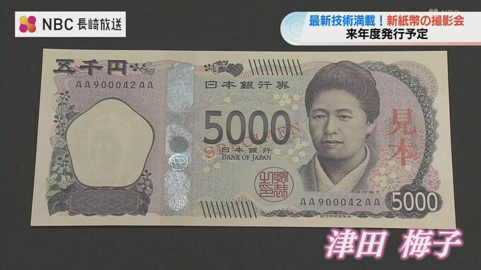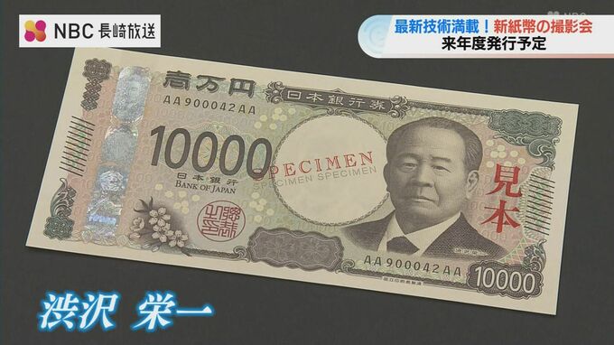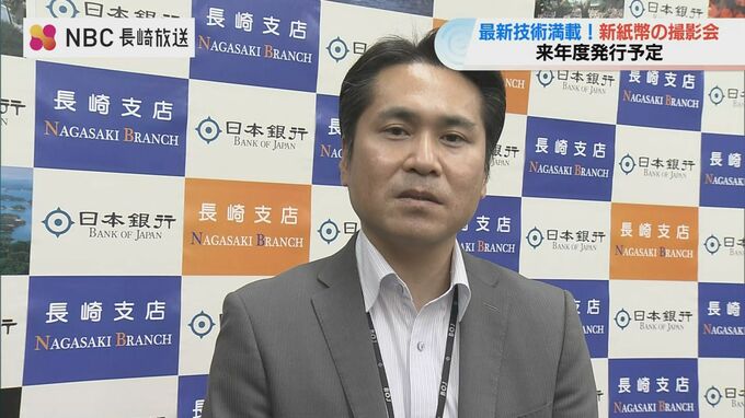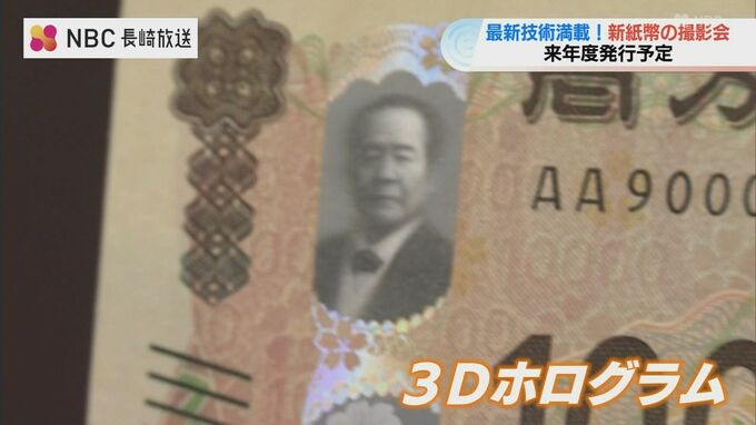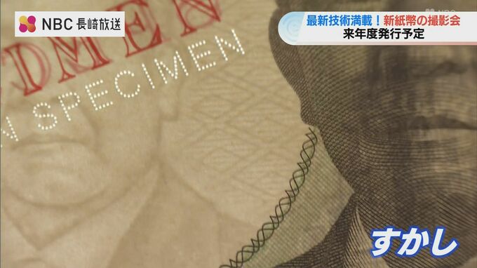 紙幣では世界初となる偽造防止技術も取り入れた、来年度発行予定の新紙幣が12日、日銀長崎支店でお披露目されました。