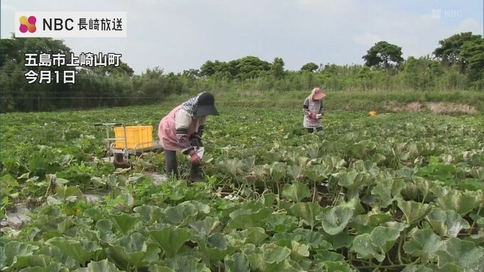 長崎県五島市では、夏場に収穫できる作物として、おととし導入された新品種のカボチャの出荷が始まりました。