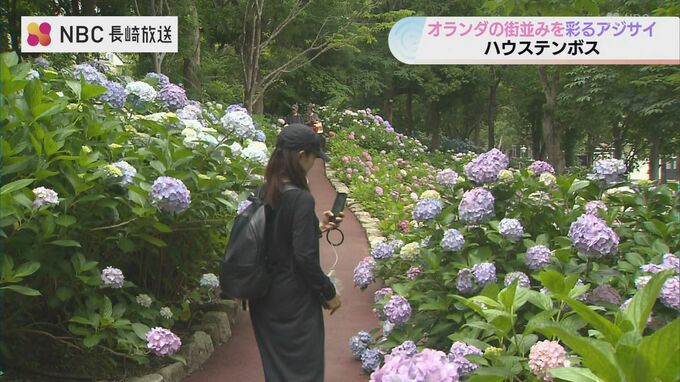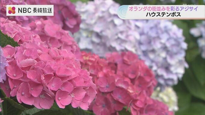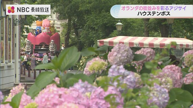 長崎県佐世保市のハウステンボスでは園内に植えられたアジサイが満開を迎え、オランダの街並みに彩りを添えています。