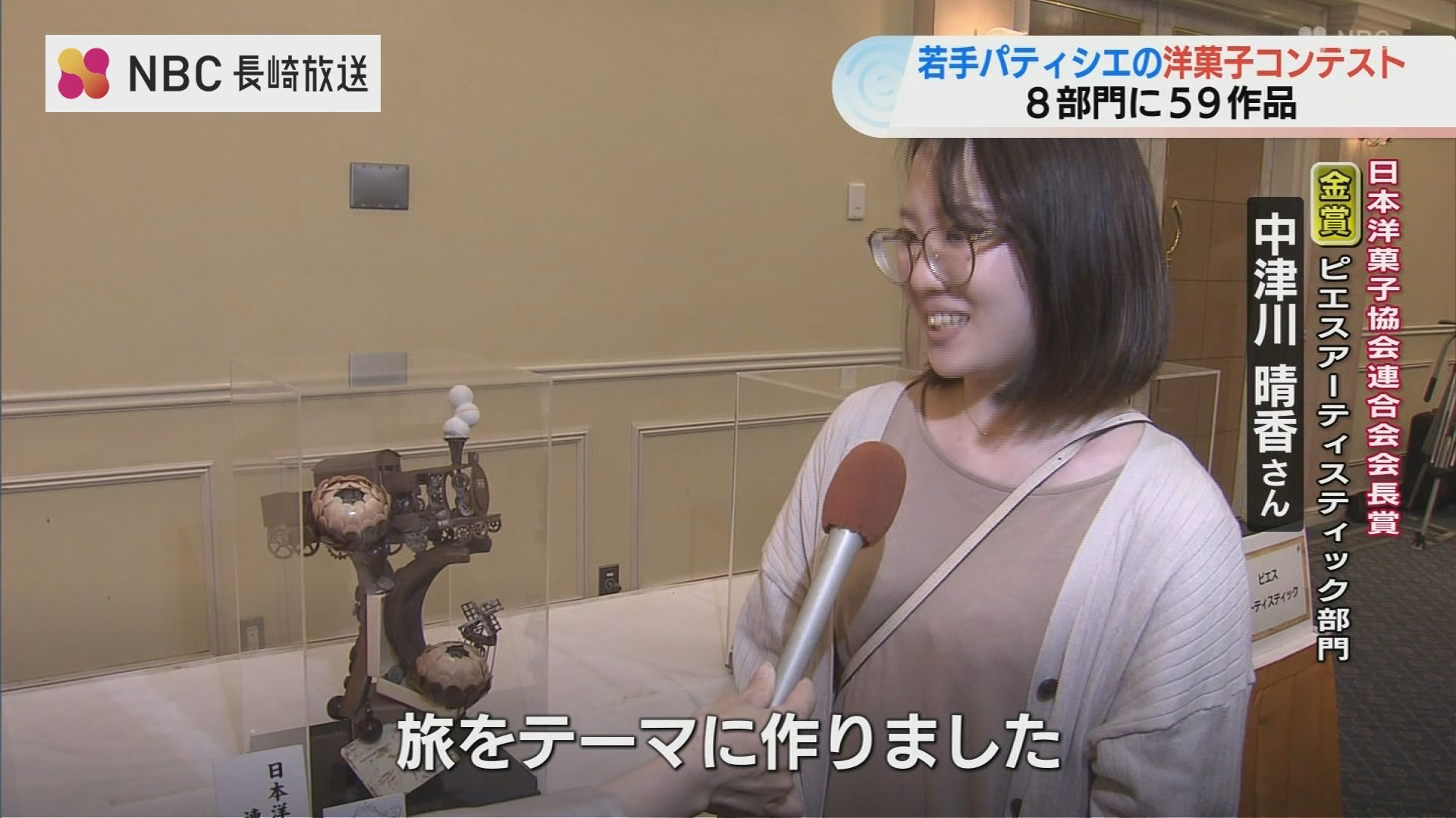 技術で美しさを表現する『ピエスアーティスティック』部門の金賞、さらに全部門の中の最高賞に選ばれたのは、中津川 晴香さんのチョコレート作品「旅」です。