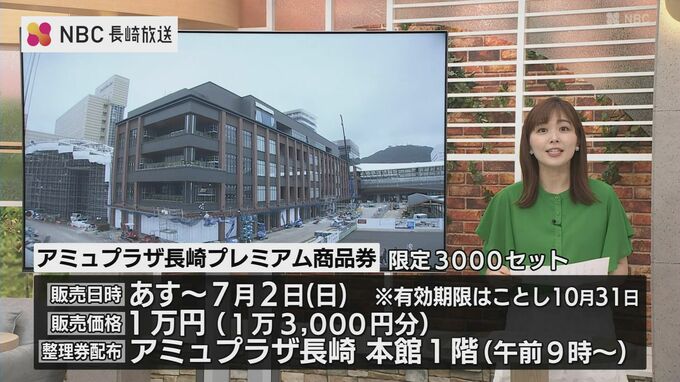 なおアミュプラザ長崎では新館の開業に先立って、物価高騰対策として1万3,000円分の商品券が1万円で購入できる『プレミアム商品券』を30日から3日間、限定3千セットで販売するということです。