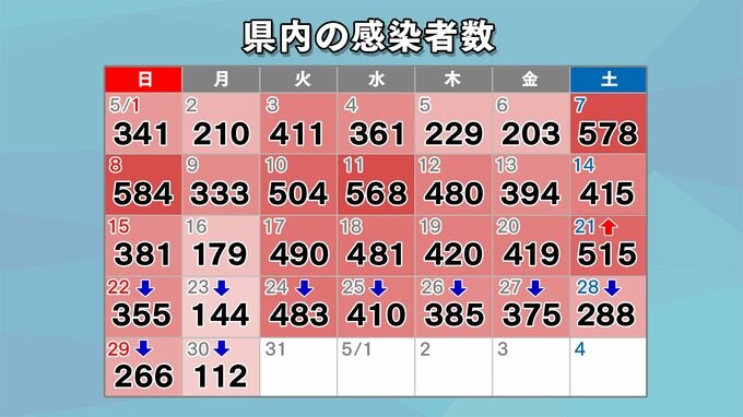 また、週末の新規感染者数は土曜日が288人、日曜日が266人と、いずれも前の週から減っていて9日連続で前の週の同じ曜日を下回りました。