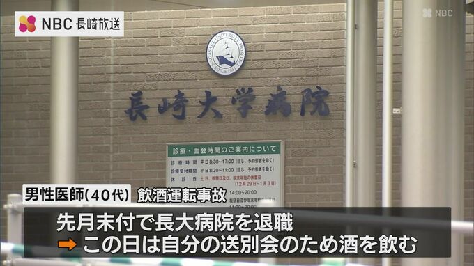 男性医師は、6月末付で、長大病院を退職することになっていて、この日は、自分の送別会のため、酒を飲んだということです。