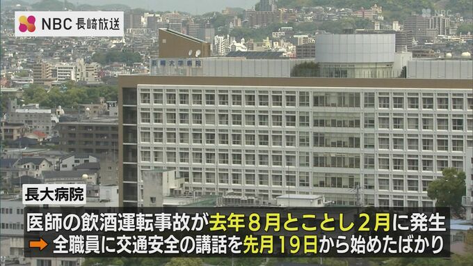 長崎大学病院に勤務していた男性医師が6月、飲酒運転で事故を起こしていたことが分かりました。長大病院の医師が飲酒運転事故を起こすのは、この1年で3人目です。