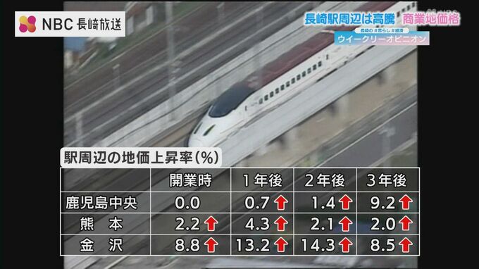 鹿児島と熊本それに金沢は、新幹線開業から3年後も、駅周辺の地価が上昇していて、長崎でも同様の動きが見られるのではないかと田平さんは見ています。
