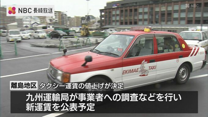 一方、離島地区でもタクシー運賃の値上げが決定しており、九州運輸局が事業者への調査などを行ったのち新運賃を公表する予定です。