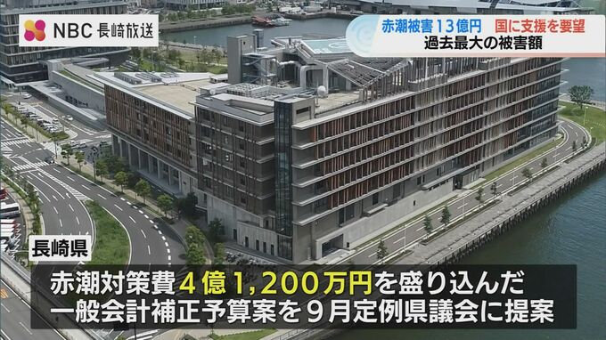 赤潮被害をめぐって長崎県は、養殖業者を支援する費用 4億1,200万円を盛り込んだ一般会計補正予算案を9月定例県議会に提案することにしています。
