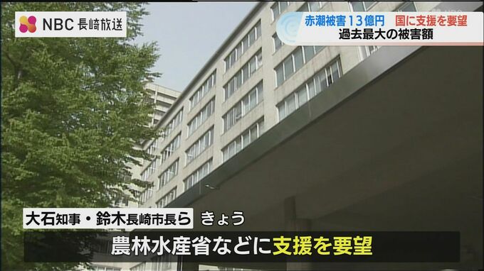 長崎市と雲仙市に面する橘湾で13億円に上る赤潮被害が発生したことを受け、6日、大石賢吾知事らが国に支援を要望しました。