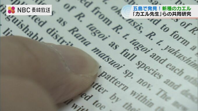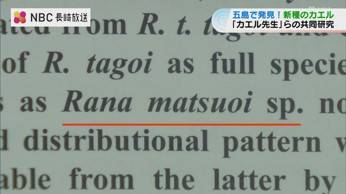 「ゴトウタゴガエル」と名付けられたカエルは先月、学会誌に五島列島固有の新種として掲載され、学名には松尾教授の名前が入りました。