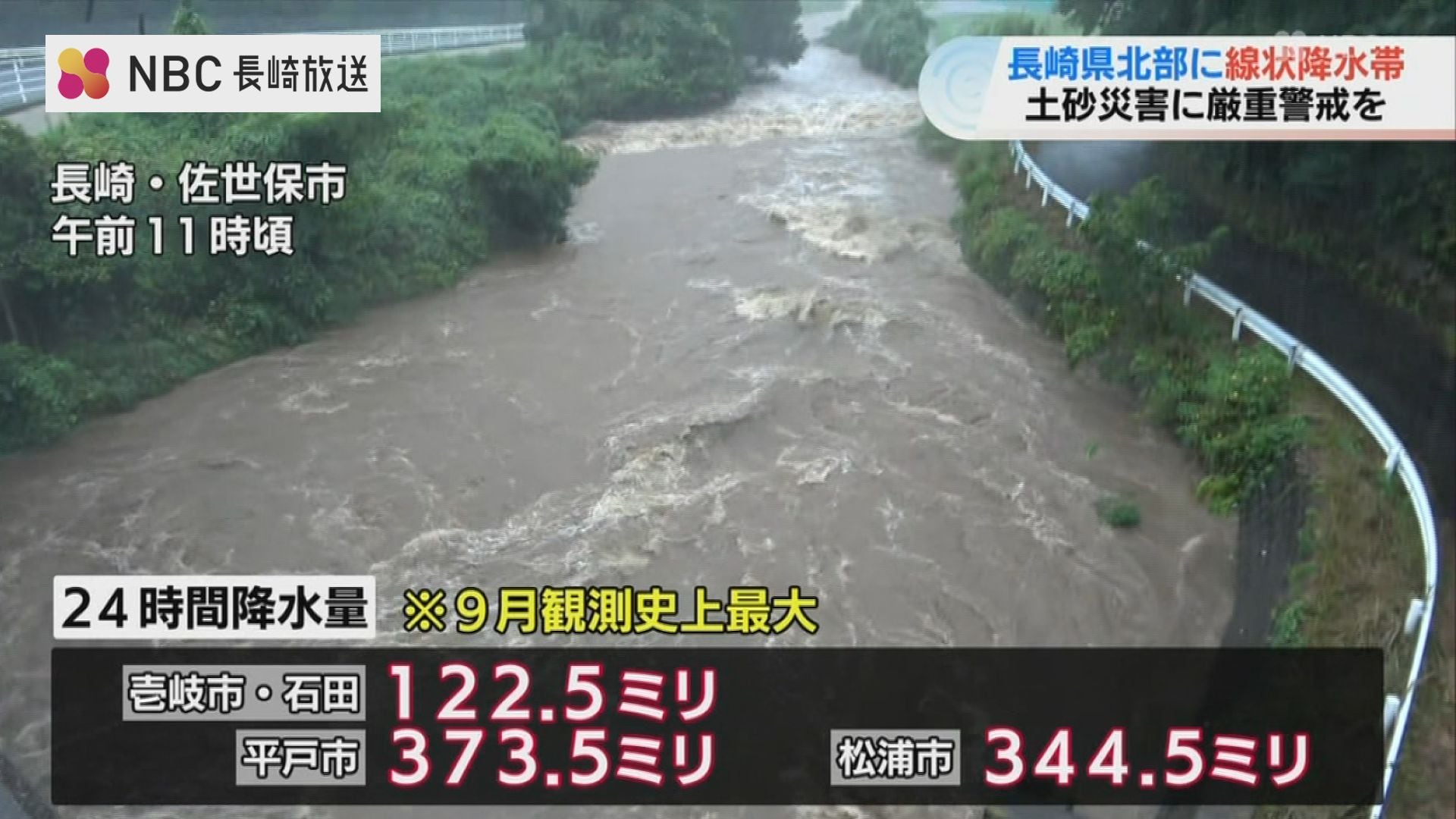 壱岐市、平戸市、松浦市で9月の観測史上最大となる24時間雨量を観測し、佐世保市の江迎川では一時、避難判断水位を越えました。