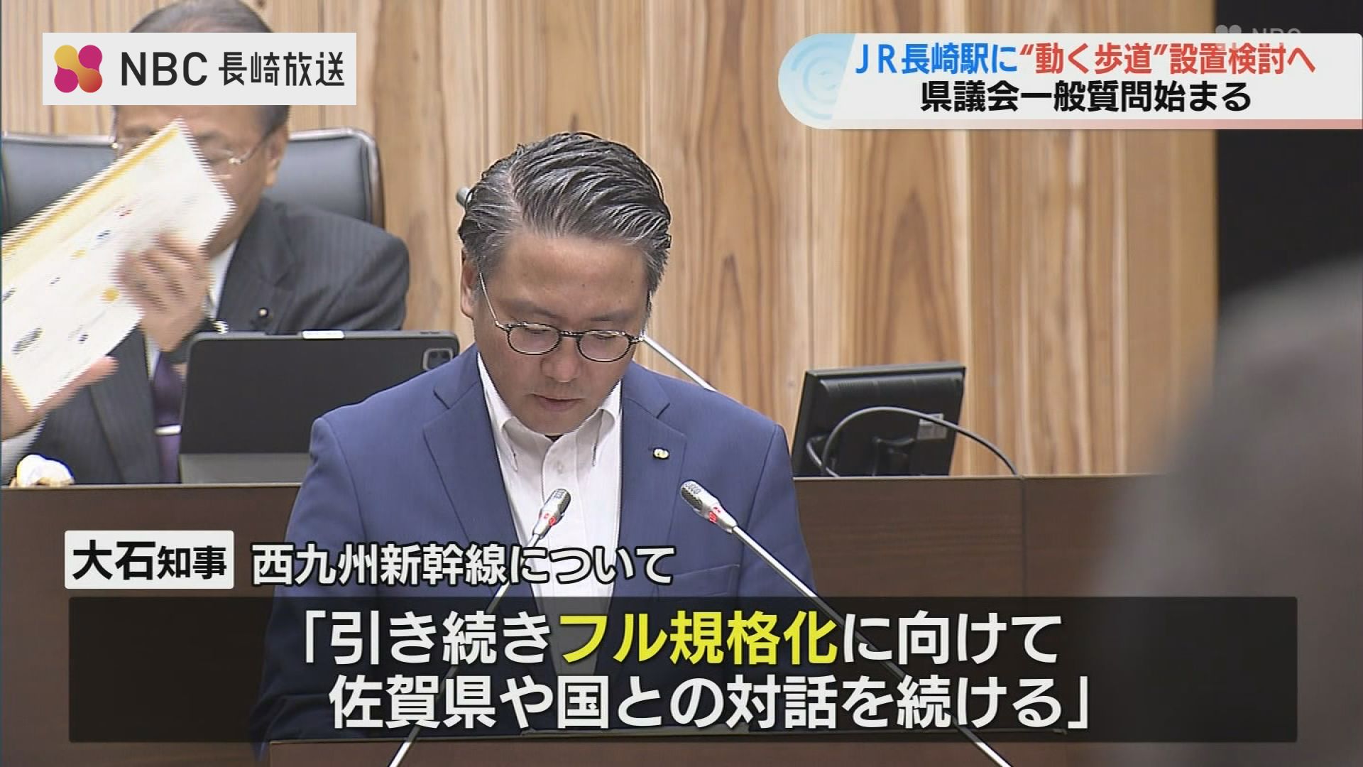 一方、まもなく開業から1周年を迎える西九州新幹線について 大石賢吾 長崎県知事は「引き続き、整備方式が決まっていない新鳥栖ー武雄温泉間のフル規格化に向けて、佐賀県や国との対話を続ける」と述べました。