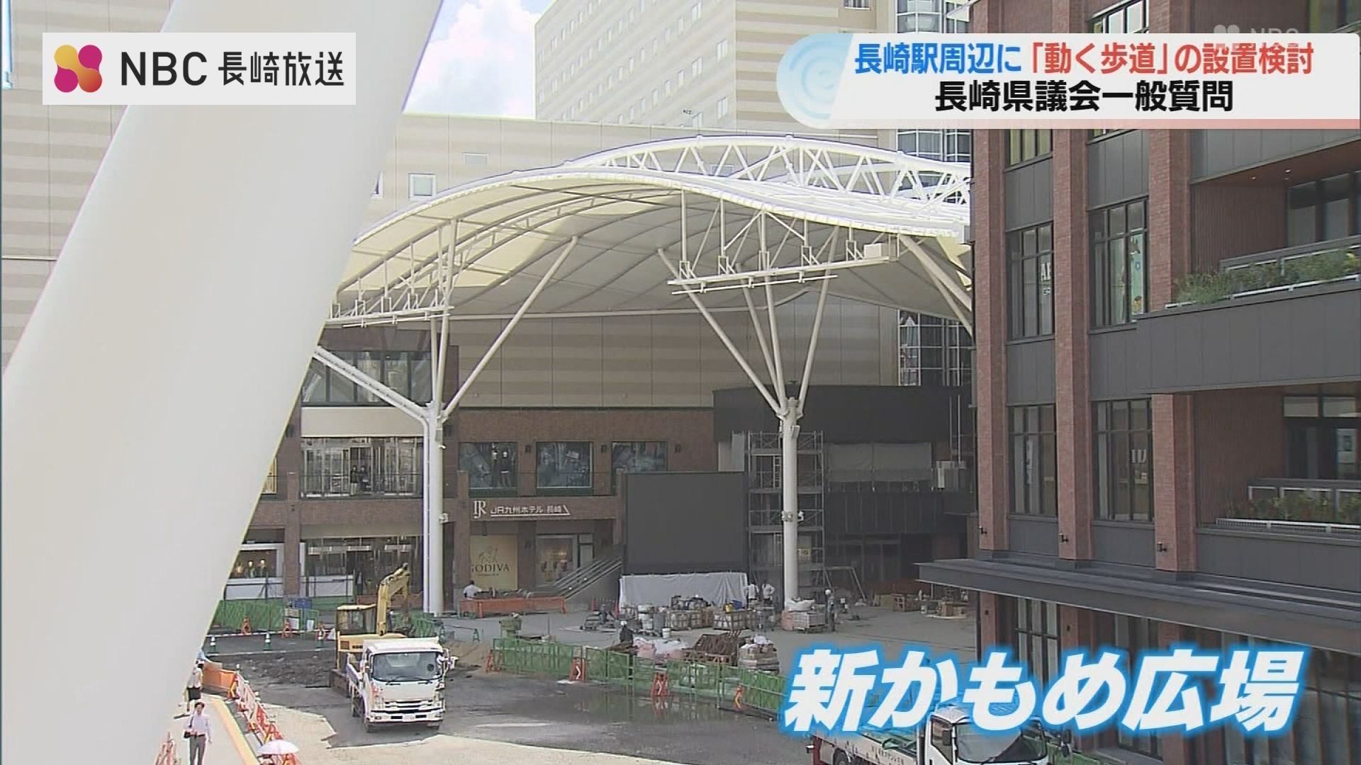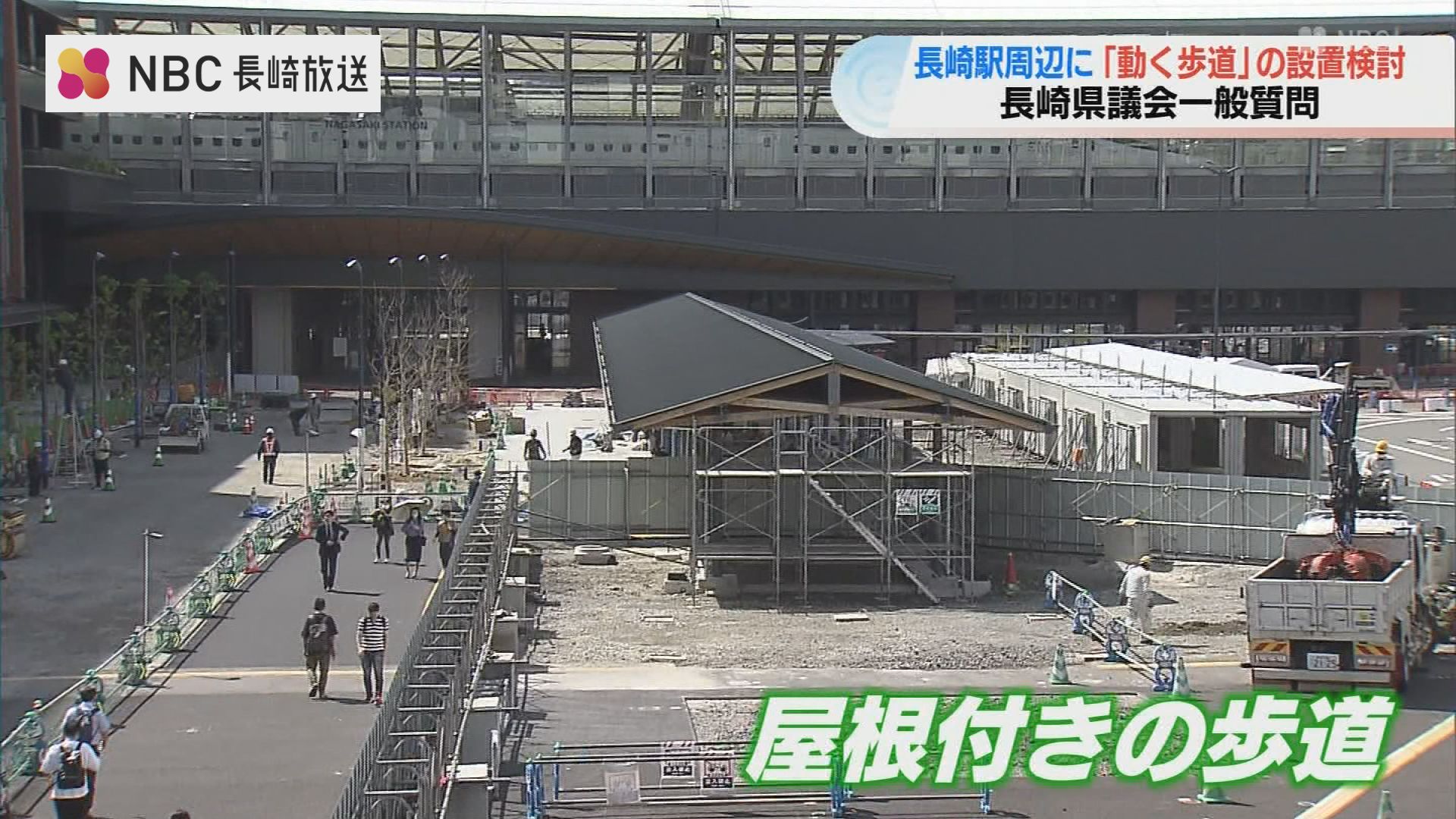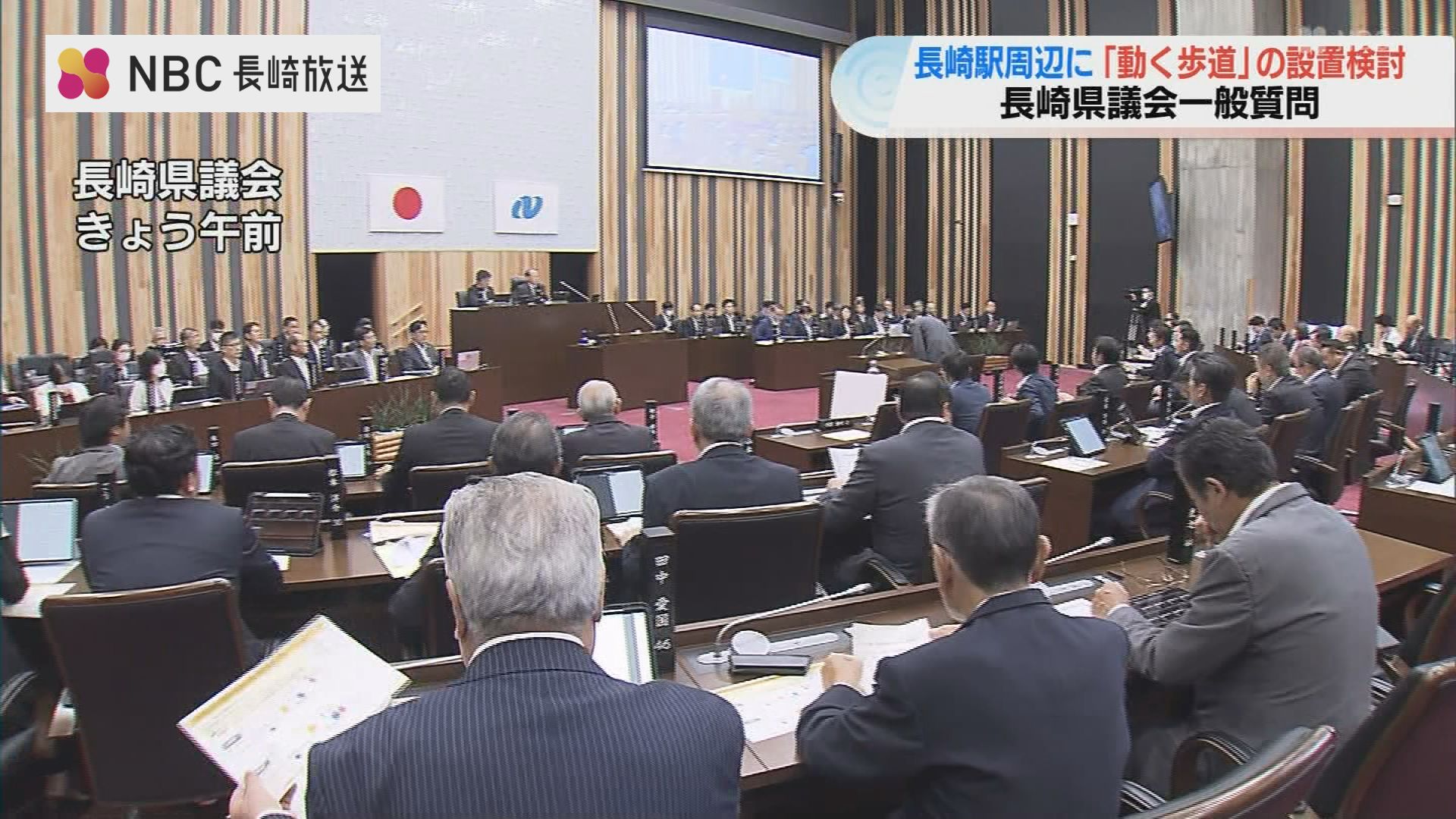 長崎県議会一般質問が19日から始まり、再整備が続く長崎駅周辺について、県は『動く歩道』の設置を検討する方針を示しました。
