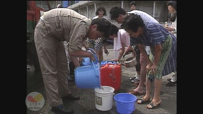 断水のため、市内各所には水を供給する給水車が出動し、順番を待つ人の列ができました。