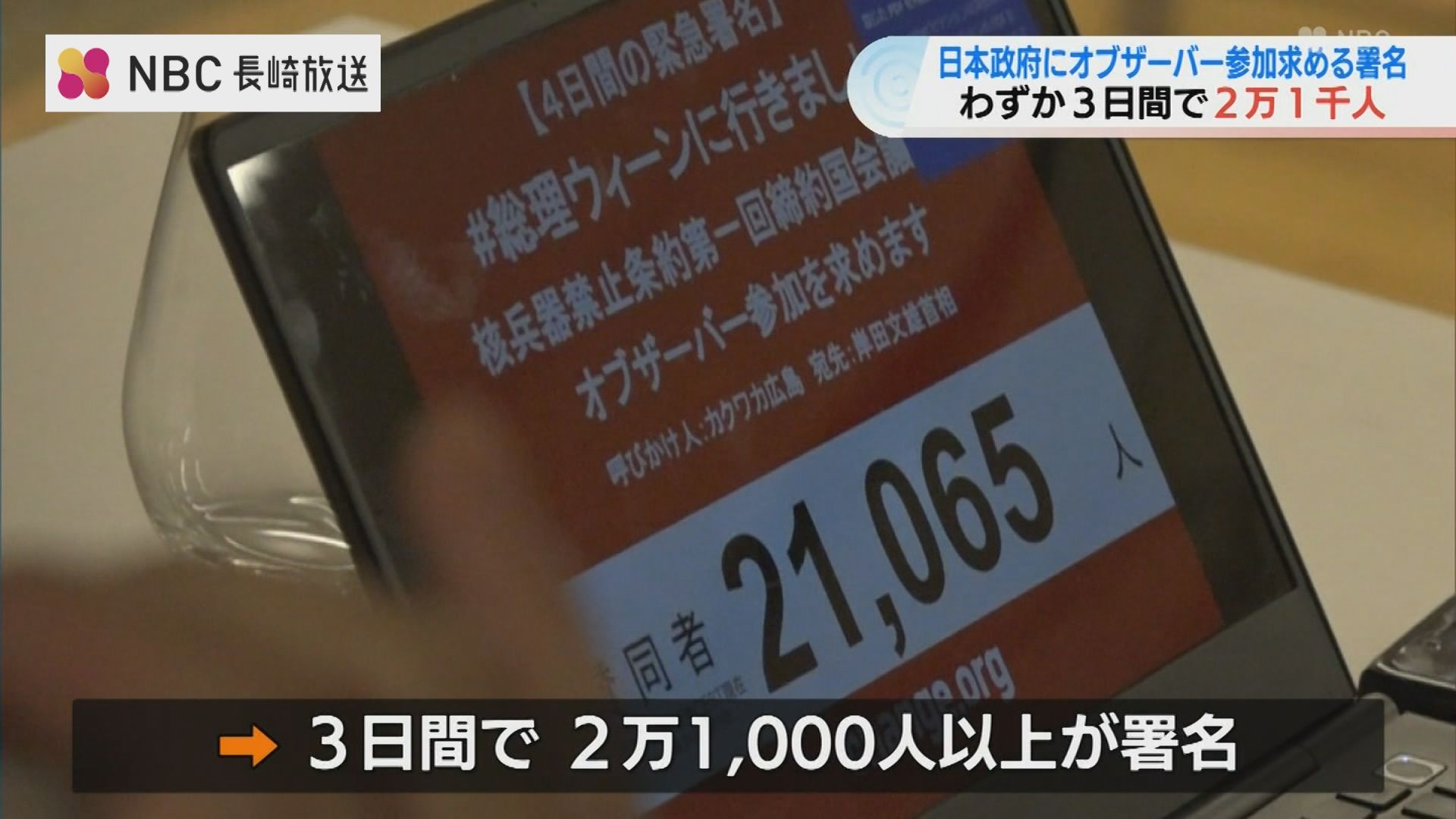 核兵器廃絶を求める若者たちで作る団体(KNOW NUKES TOKYO / カクワカ広島)が、『日本のオブザーバー参加を求めるデジタル署名活動』を行い、開始からわずか3日間で、2万1千人以上が賛同しました。