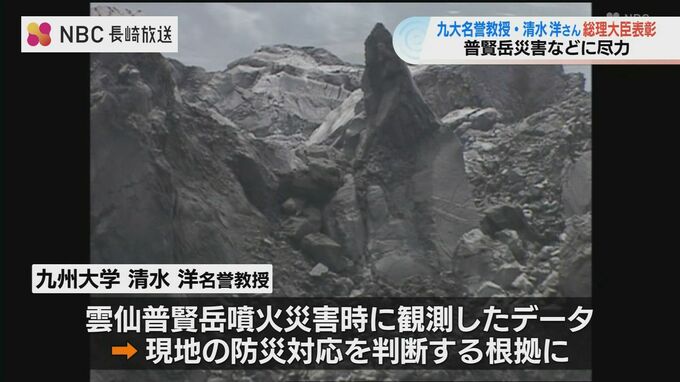 受賞した九州大学名誉教授の清水洋さんは、雲仙普賢岳の噴火災害時に観測したデータが現地の対応を判断する根拠となったほか 毎年、普賢岳の防災視察登山を行い、課題や危機意識を地元自治体らと共有する活動に取り組んできました。