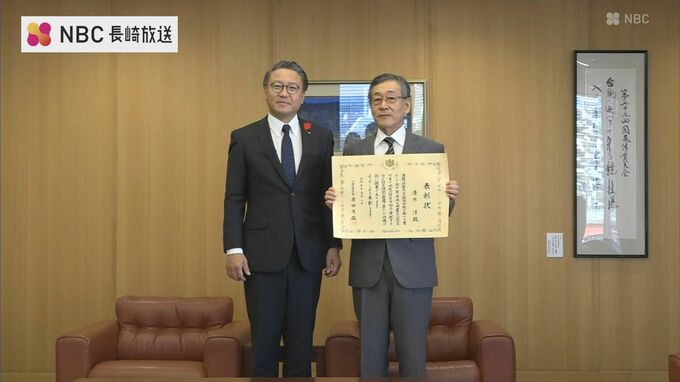 「防災功労者内閣総理大臣表彰」を受け 17日、長崎県庁で受賞を報告しました。