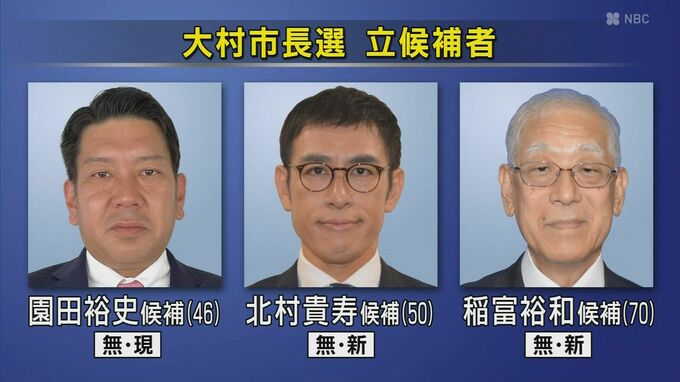 任期満了に伴う長崎県の大村市長選挙が22日告示され、現職と新人2人の合わせて3人が立候補しました。