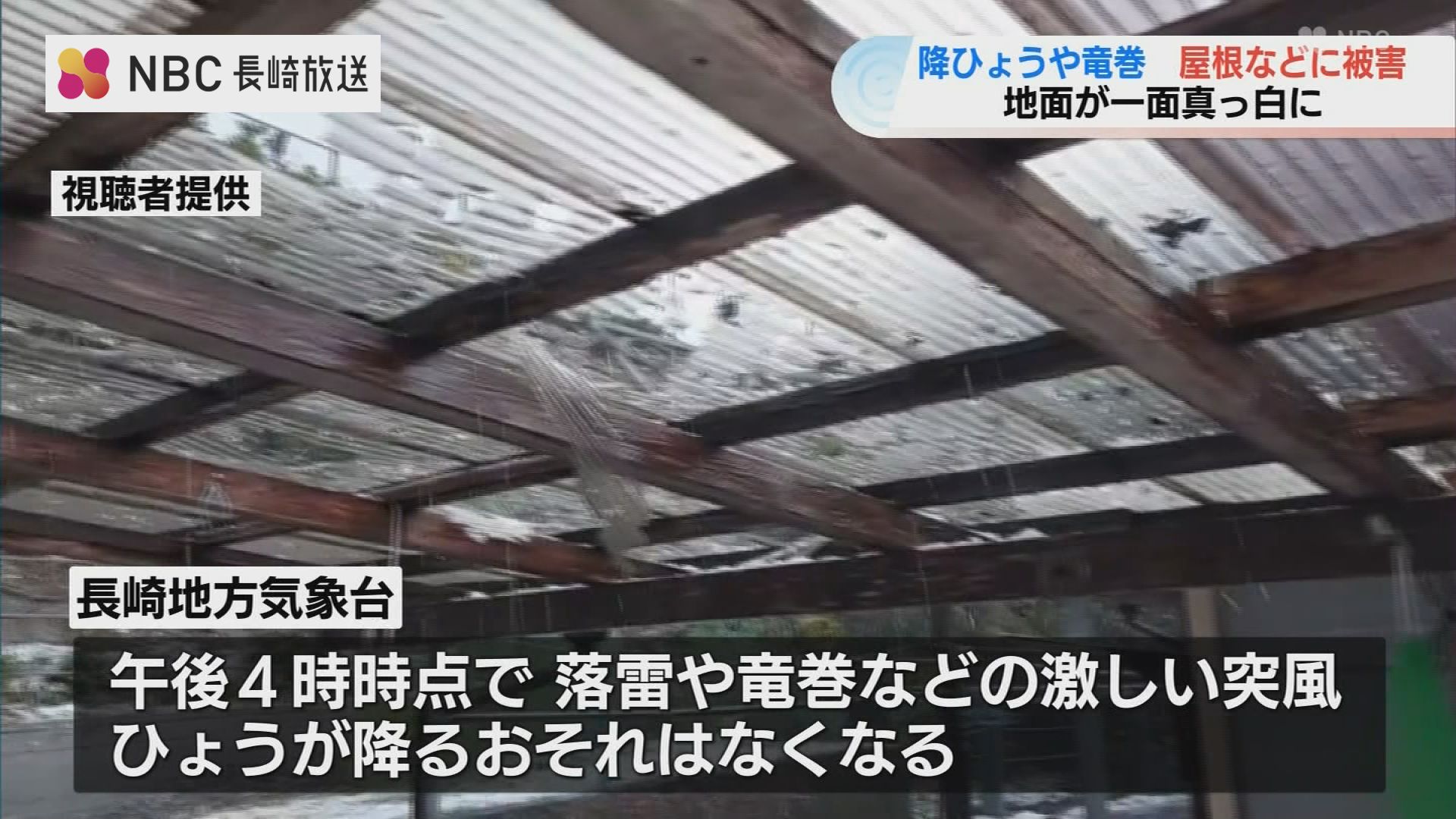 長崎地方気象台によりますと、午後4時時点で、落雷や竜巻などの激しい突風、ひょうが降るおそれはなくなったということです。