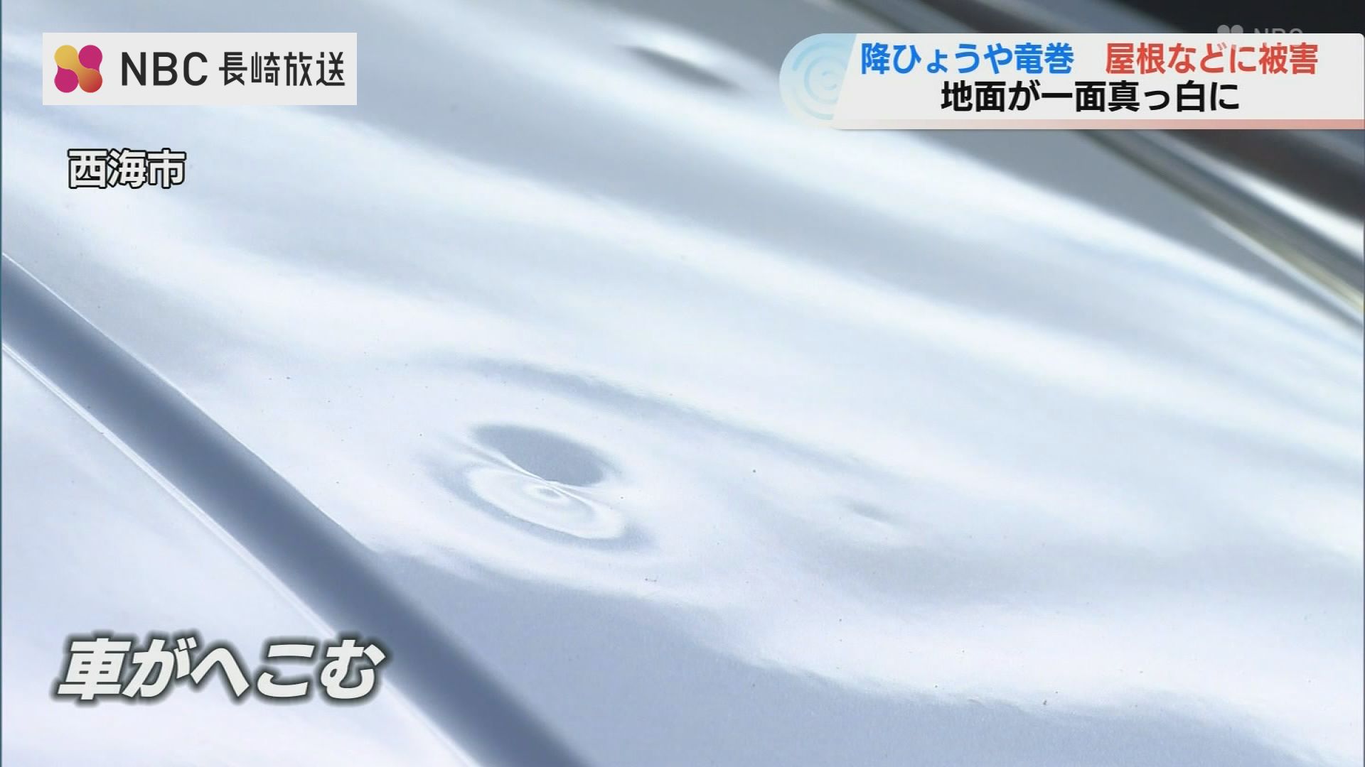西海市ではひょうが当たった車にへこみができました