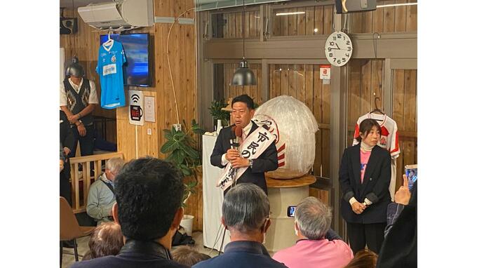 園田さんは自身の選挙事務所で、支持者らを前にあいさつを行いました。
