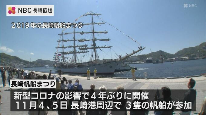 新型コロナの影響で4年ぶりとなる長崎帆船まつりは、11月4日と5日、長崎港周辺で、海王丸など3隻の帆船が参加して開かれます。