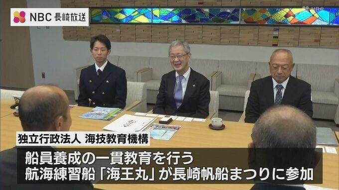 海技教育機構は、船員養成の一貫教育を行っていて、航海練習船「海王丸」が長崎帆船まつりに参加するのを前に、理事長らが鈴木長崎市長を訪ねました。