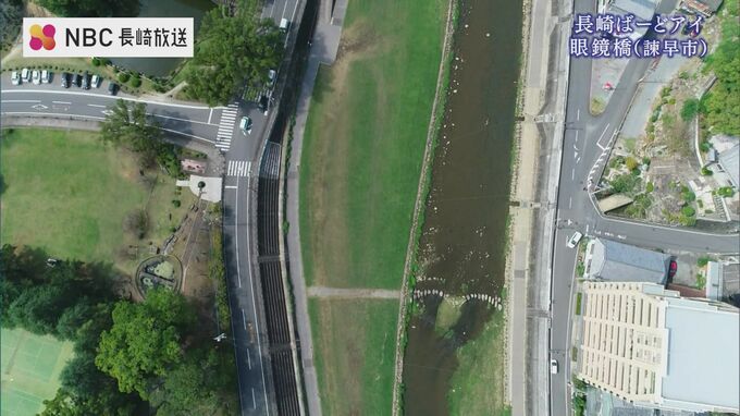 雨季の本明川の流れに耐えられる橋として設計されました。