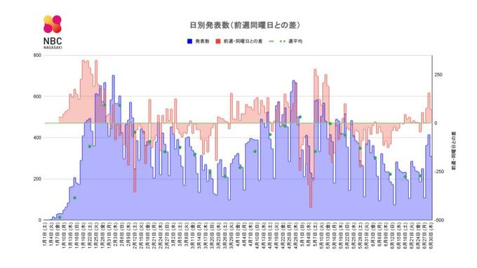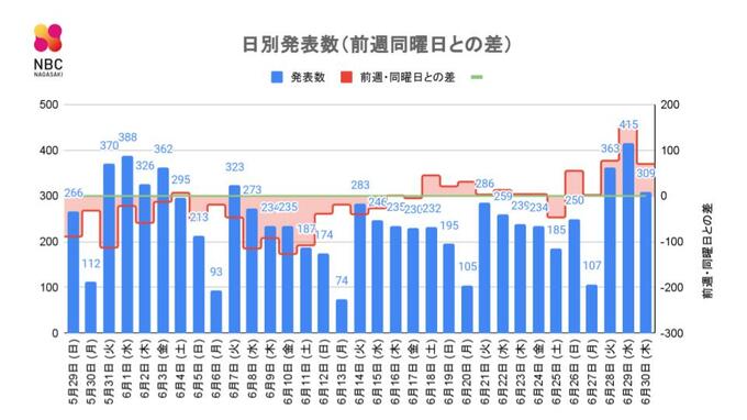 【長崎】309人が新型コロナ陽性 2022年6月30日(木) 16:05 国内 長崎県内で309人が新型コロナ陽性(30日発表) ・前週同曜日と比べ+70人 ・年代別では40代が21人(26.5%)と最多 【市町別】 長崎市 78 佐世保市 114 島原市 11 諫早市 41 大村市 29 平戸市 2 松浦市 2 対馬市 0 壱岐市 0 五島市 9 西海市 0 雲仙市 5 南島原市 2 長与町 4 時津町 8 東彼杵町 1 川棚町 1 波佐見町 1 小値賀町 0 佐々町 1 新上五島町 0
