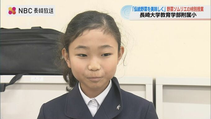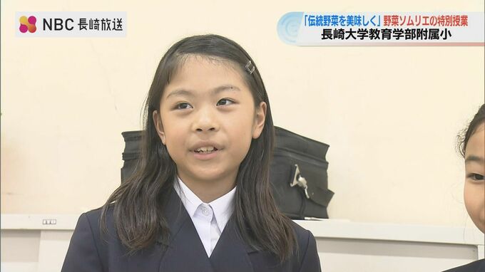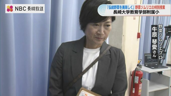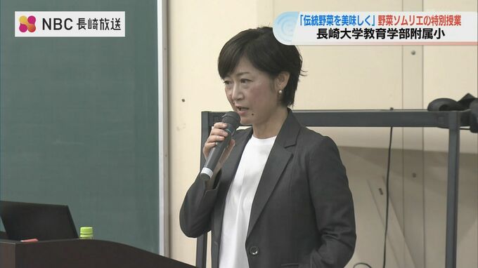 長崎市の小学校で22日、野菜ソムリエプロを招いた特別授業が行われ、子どもたちが長崎特産の伝統野菜について学びました。